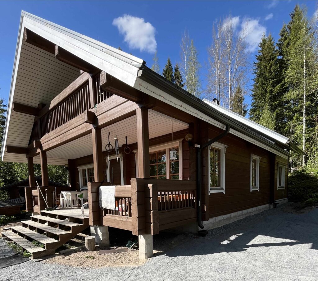 Samalla varmistettiin rakennuksen parempi kosteusturvallisuus pitkälle tulevaisuuteen. Uudet salaojat ja sadevesijärjestelmä ohjaavat veden tehokkaasti pois perustuksista, mikä suojaa sekä sokkelia että hirsirakennetta.
