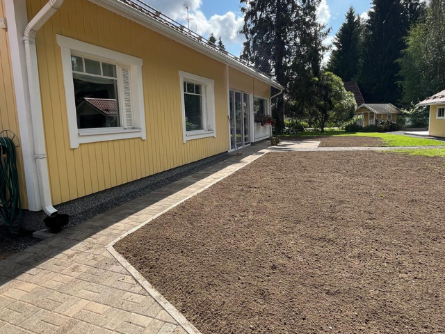 • 5. Lopputarkastus ja pihan viimeistely: Kun työ on tehty, pihan epätasaisuudet tasoitetaan, tarvittaessa kylvetään nurmikko ja kulkuväylät siistitään. Yhdessä asiakkaan kanssa tarkastetaan työn laatu.